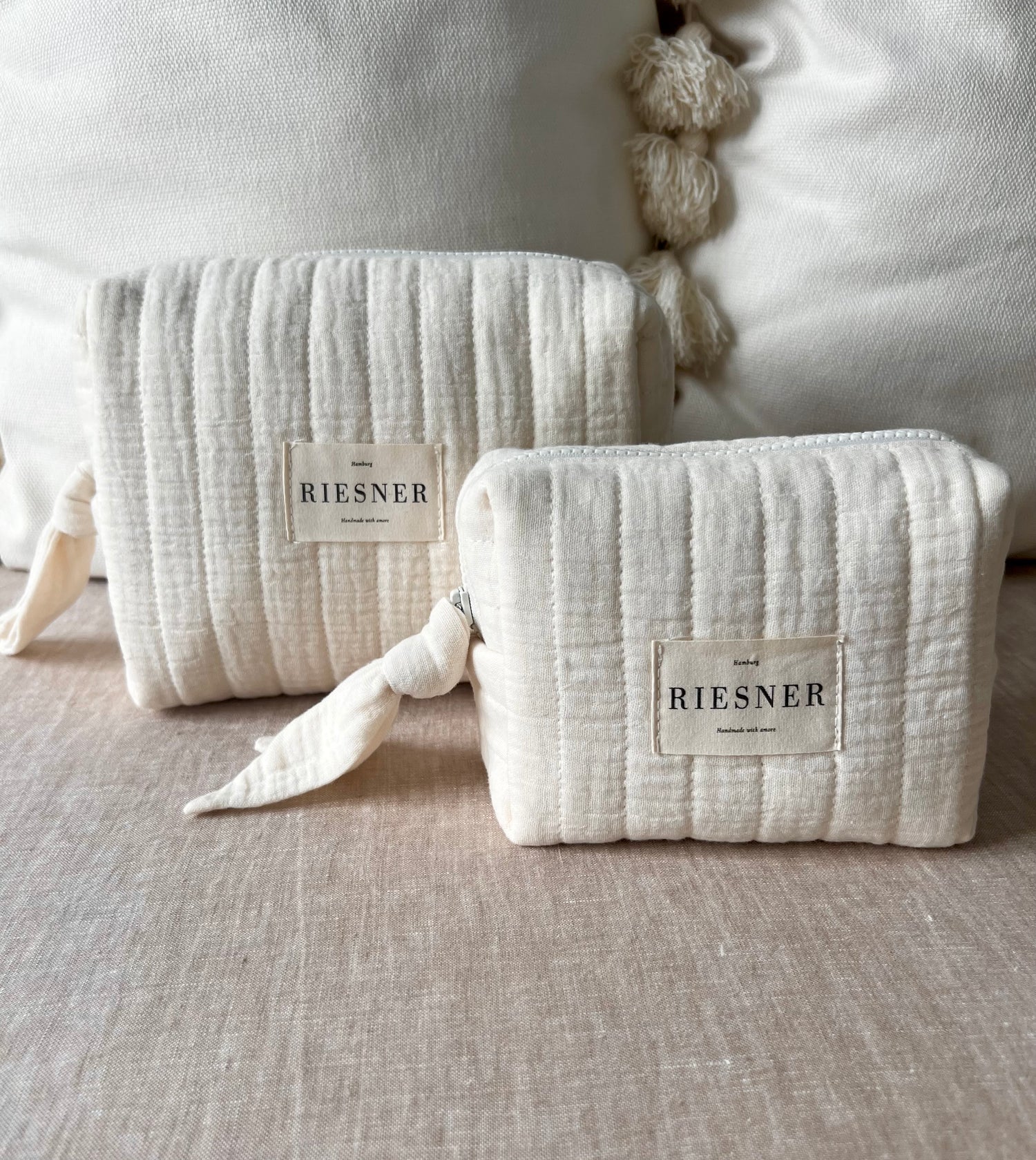 Mit Liebe von Hand genäht in unserem Atelier in Hamburg ist unsere Quinn Kosmetiktasche in zwei unterschiedlichen Größen verfügbar - ein hinreißendes Duo.
